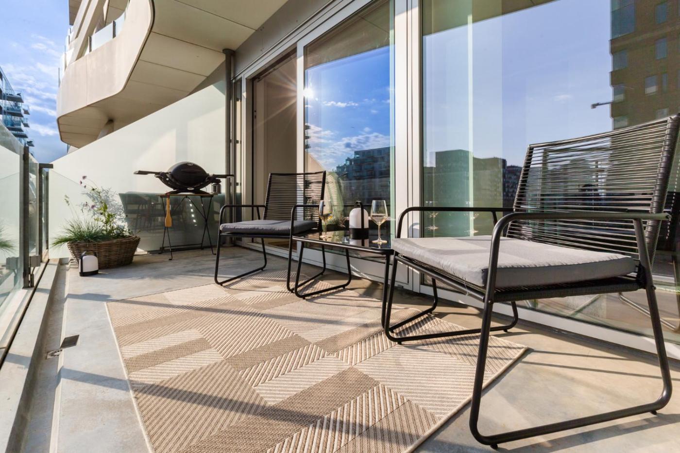 Two-Bedroom Apartment. This spacious apartment is comprised of 1 living room, 2 separate bedrooms and 1 bathroom with a shower and free toiletries. Guests will find a stovetop, a refrigerator, a dishwasher and kitchenware in the well-fitted kitchen. The apartment also has a barbecue. Featuring a terrace with sea views, this apartment also offers a washing machine and a flat-screen TV. The unit offers 2 beds.