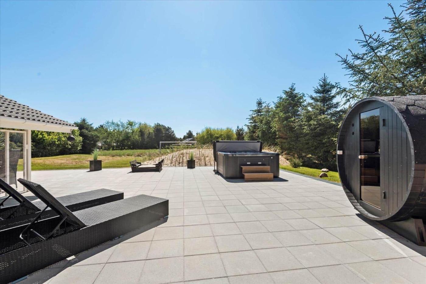 Holiday Home. The hot tub and sauna are the special features of this holiday home. Boasting 4 bedrooms and 2 bathrooms with a shower, this holiday home has a well-fitted kitchenette and a terrace. Guests will find a stovetop, a refrigerator, a dishwasher and a microwave in the kitchenette. The holiday home also includes a barbecue. Featuring outdoor furniture, this holiday home also features a washing machine, a tea and coffee maker and a TV. The unit offers 5 beds.