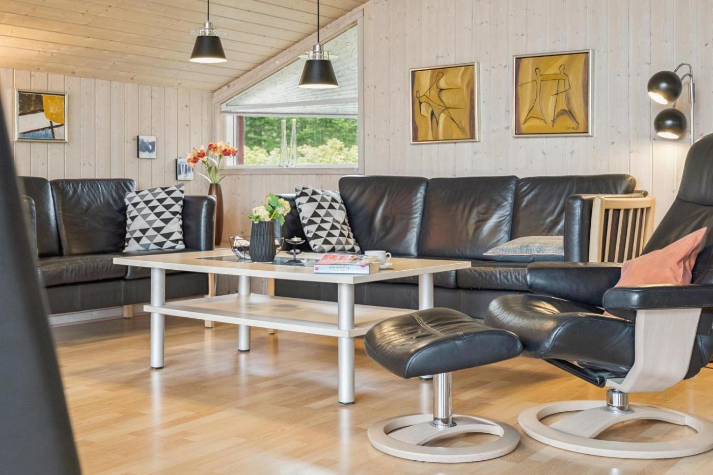 Four-Bedroom Holiday Home. This holiday homes special features are the sauna and the fireplace. The holiday home features 4 bedrooms, 2 bathrooms and a kitchen. The holiday homes kitchen, which has a dishwasher and a microwave, is available for cooking and storing food. The spacious holiday home provides a washing machine, an electric kettle, a barbecue, parquet floors and a TV with satellite channels.