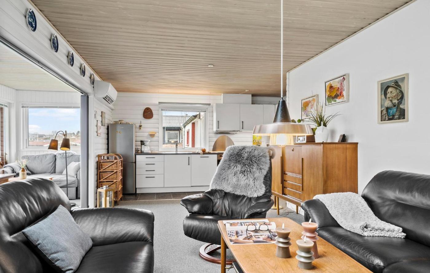 Two-Bedroom Holiday Home. This holiday homes special feature is the fireplace. Featuring a private entrance, this air-conditioned holiday home comprises 1 living room, 2 separate bedrooms and 1 bathroom with a shower. Guests will find a stovetop, a refrigerator, a dishwasher and kitchenware in the fully equipped kitchen. The holiday home also provides guests with a barbecue. The holiday home provides a flat-screen TV, a coffee machine, a dining area, heating as well as sea views. The unit offers 3 beds.